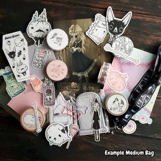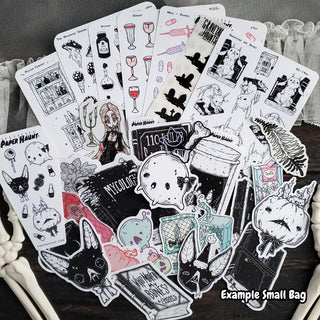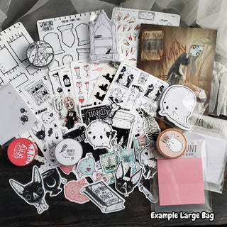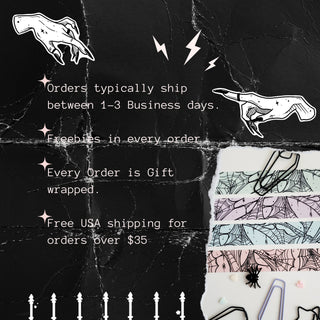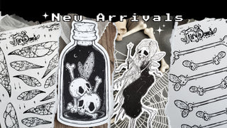 Introducing Paper Haunt, an extension of the Artist White Stag's stationery line. This new brand will offer a variety of unique stationery items and other fancy goods, creating a separate entity from the design aspects of White Stag while still delving into the Creepy cute and gothic inspirations of the brand.