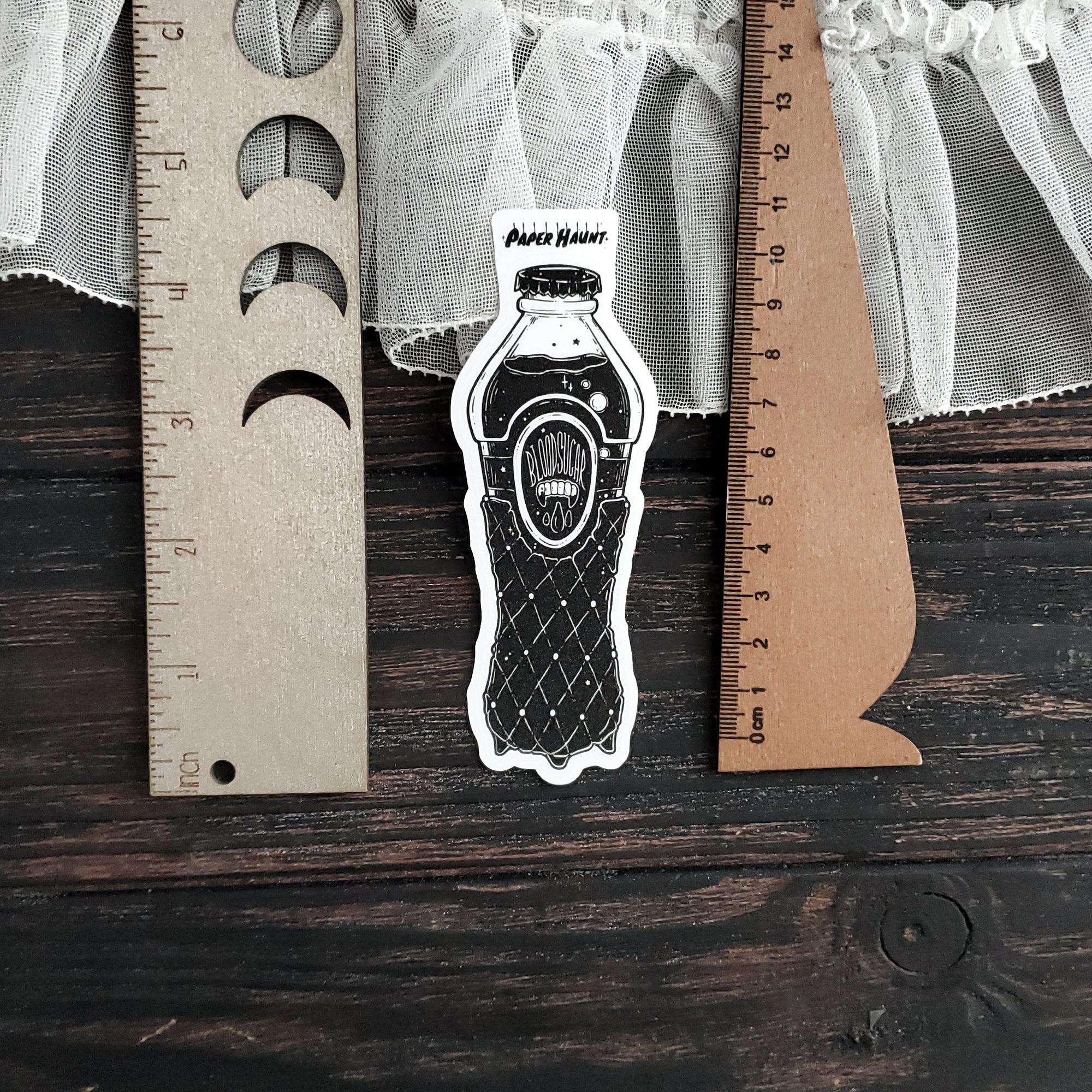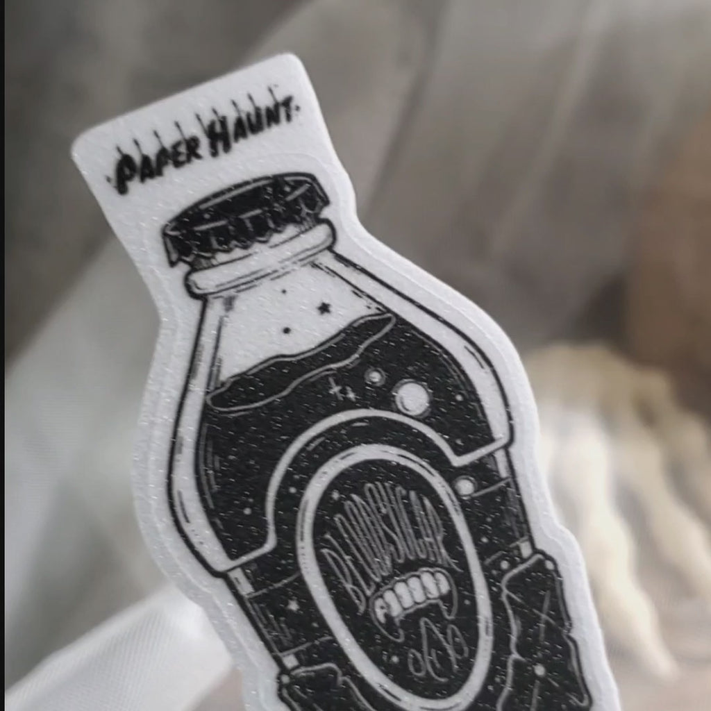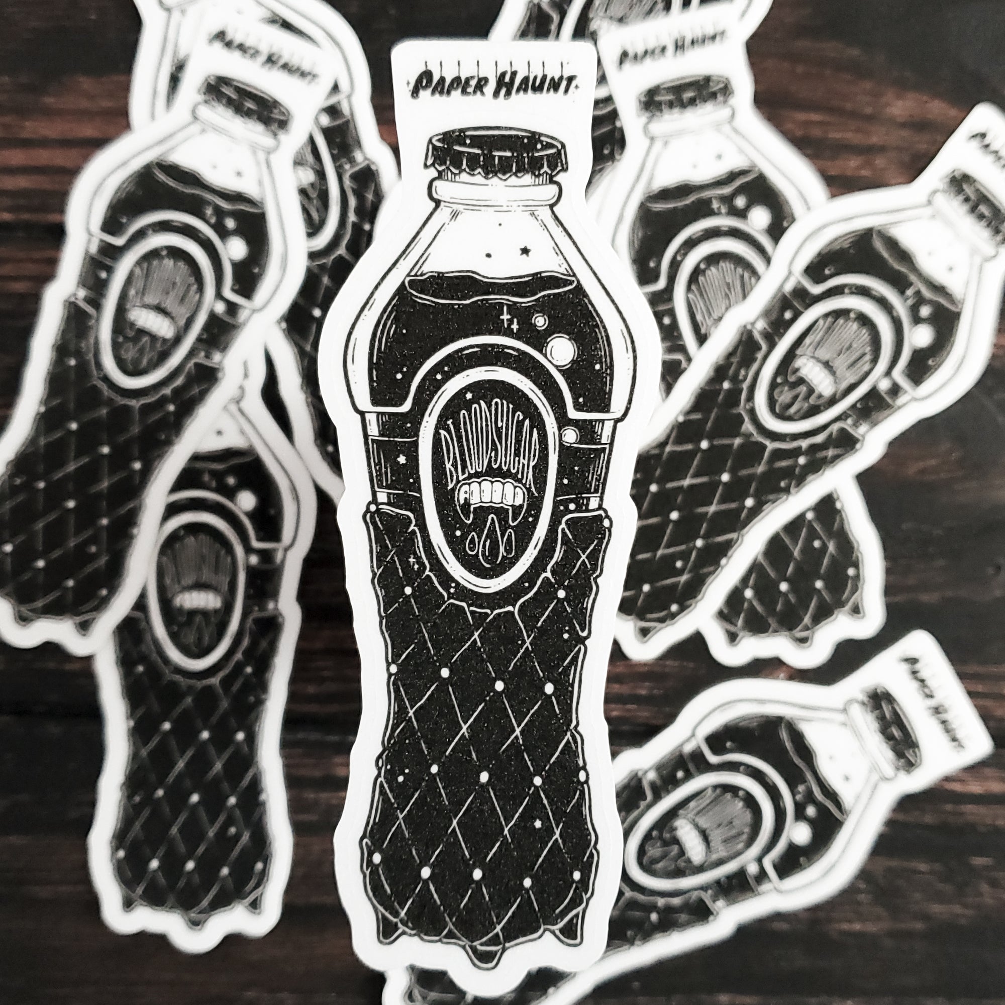 New Blood Sugar vampire-themed soda bottle sticker in black and white. Haunt your laptop, journal or crypt with this creepy cute pink vampire sticker. Spooky cute goth adornment with an easy peel backing, perfect gift for Halloween and book lovers. Logo is not part of sticker but the backing.