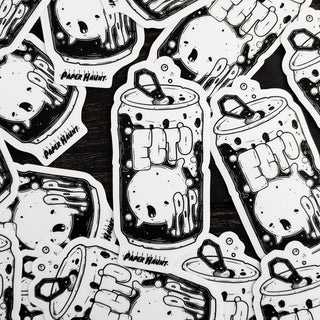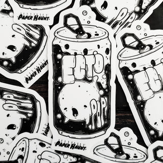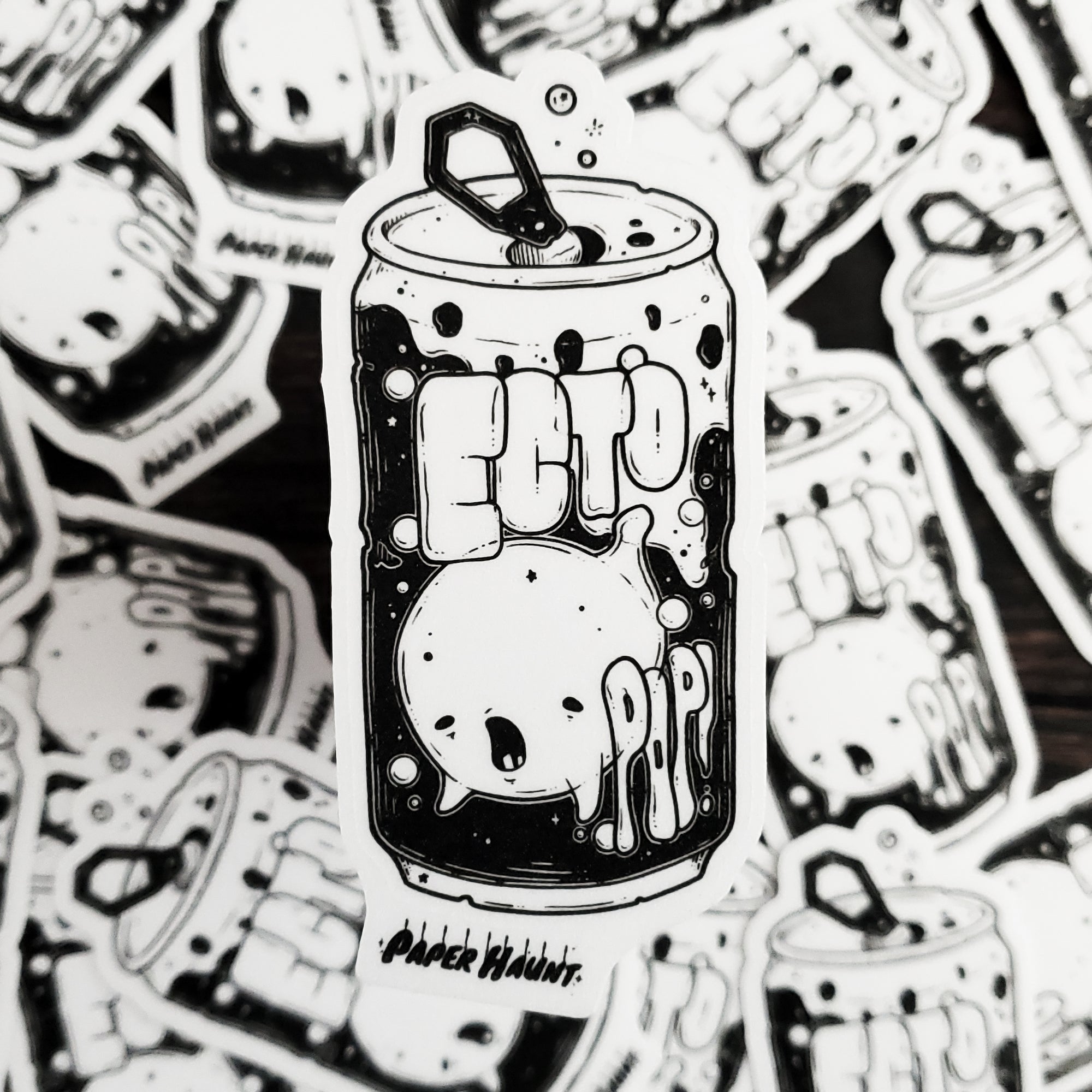 Haunt your crypt, laptop or journal with this creepy cute goth ghost soda pop sticker in black and white. Spooky cute ecto pop vinyl die cut sticker featuring ghosts. Art by White Stag.